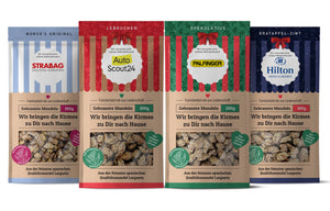 Das absolute Highlight als Kunden, Mitarbeiter oder Lieferanten Präsent: Unsere personalisierten Verpackungen der gebrannten Mandeln. Mach Deinen Kunden, Mitarbeitern oder Lieferanten doch eine ganz besondere Freude.